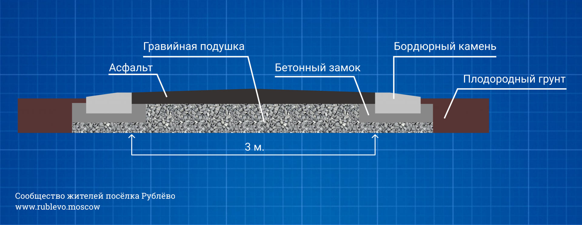 - Асфальтирование произвести с обеих сторон вровень к верхнему краю бордюрного камня с разуклонкой в разные стороны.