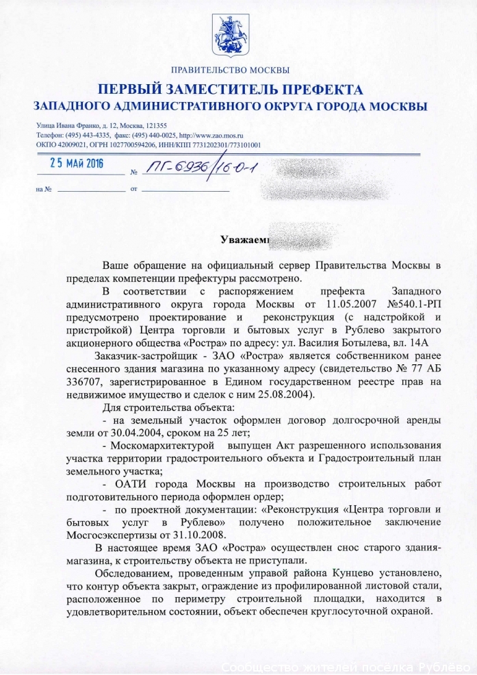 2. На текущий момент нет разрешения от МосГосСтройНадзора.