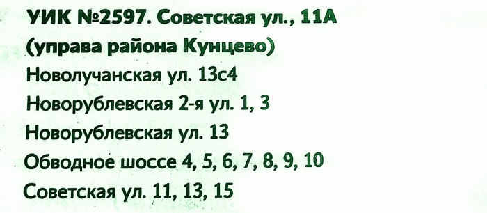 Адрес вашего избирательного участка 10 сентября 2017 года